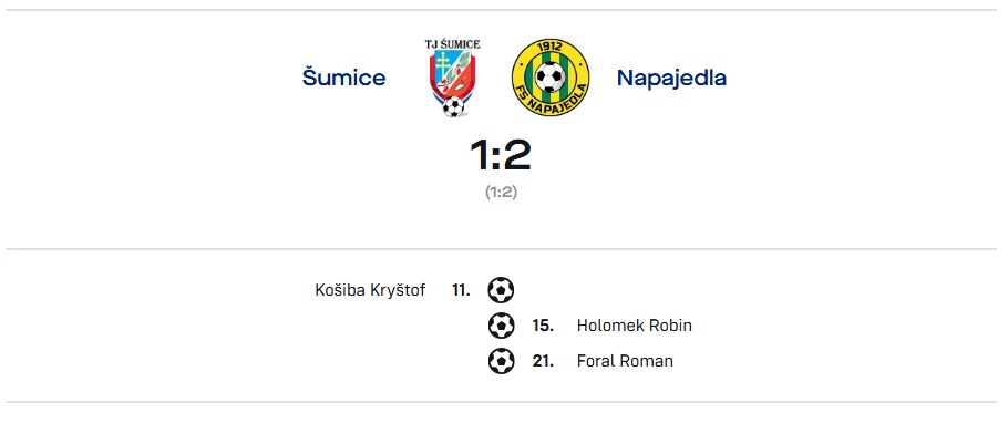 Za mě to byl minimálně remízový zápas. Napajedla v prvním poločase potrestala naše chyby. Měla tři šance a dala dva góly, kdežto my jsme taky měli tři šance, ale dali jenom jeden gól. První poločas byl celkově herně vyrovnaný. Druhou půli jsme začali dobře. Měli jsme tam nějaké standardky, propadnuté míče ale nedokázali dostat do sítě. V hostující šestnáctce nám chyběl patřičný důraz. Nebyli jsme tak agresivní a přesní. Třeba obránci na malém vápně chyběl půlkrok, aby dal gól. Takových věcí tam bylo víc. Hosté ve druhé půli žádnou vyloženou šanci neměli. Kluky i přes prohru musím pochválit. Po předchozích zápasech makali, favorizovaným Napajedlům se vyrovnali a nic neodflákli. Někteří kluci se nám uzdravili, takže sestava byla lepší než před dvěma týdny, ale zase jsme přišli o vyloučeného Pančochu. Po strkanici dostal červenou kartu i hostující hráč, takže oba týmy dohrávaly v deseti.