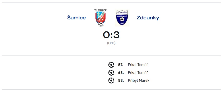Zápas byl herně vyrovnaný, šance i střely byly na obou stranách. V prvním poločase branka nepadla, ale oba týmy několikrát zahrozily. Klidně jsme mohli dít gól a jít vedení. Pokud ale neproměníme žádnou šanci, težko můžeme pomýšlet na body. Zdounky byly o něco lepší, ale do naší šestnáctky se moc nedostávaly. Nás srazil první gól, který jsme inkasovali v 57. minutě po centru ze strany. Gólman míč pouze vyrazil na malé vápno, kde ho doklepl hostující hráč,. Kluci se dál snažili, ale z naší strany to už byla spíše křeč. Pak jsme dostali další branku a už jsme nebylo schopní dostat balon do jejich šestnáctky. Měli jsme tam nějaké standardky i centry, ale pořádnou šanci jsem neměli. Na konci se dostali eště třetí gól a bylo hotovo. Ve finále jsme rádi, že už podzim skončil. Byl to podivný půlrok. Musíme se v zimě dát pořádně dohromady a potrénovat. Získali jsme pouze deset bodů, což je hodně málo a jaro nebude vůbec jednoduché.